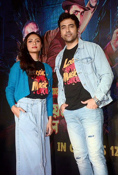 The trailer of filmmaker Debaloy Bhattacharya directorial, Hoichoi Studios' maiden film, 'Shri Swapankumarer Badami Hyenar Kobole', was unveiled at a city mall in Kolkata on Tuesday. Along with Debaloy, actors Abir Chatterjee, Shruti Das and others were in attendance. (Images by Avishek Mitra/IBNS)
