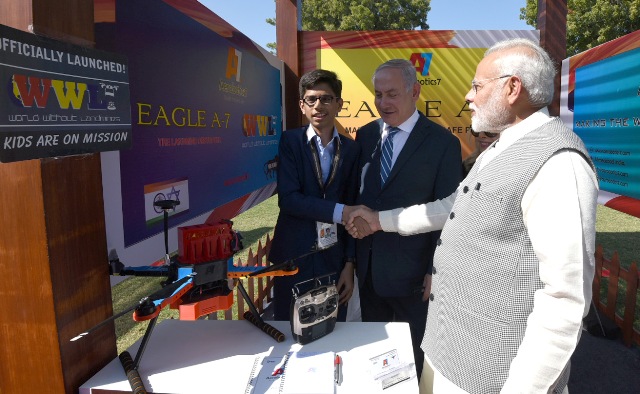 The Prime Minister, SNarendra Modi and the Prime Minister of Israel, Benjamin Netanyahu visiting the Startup Exhibition and interacting with innovators and Startup CEOs at iCreate Center, at Deo Dholera Village, in Ahmedabad, Gujarat on January 17, 2018.
