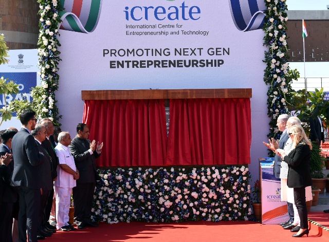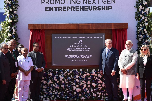 The Prime Minister, Narendra Modi and the Prime Minister of Israel, Benjamin Netanyahu inaugurating the iCreate Center, at Deo Dholera Village, in Ahmedabad, Gujarat on January 17, 2018. The Chief Minister of Gujarat, Vijay Rupani and other dignitaries are also seen.