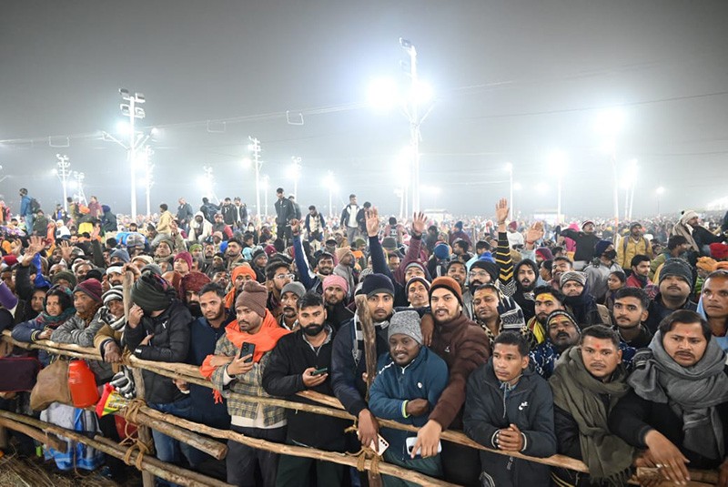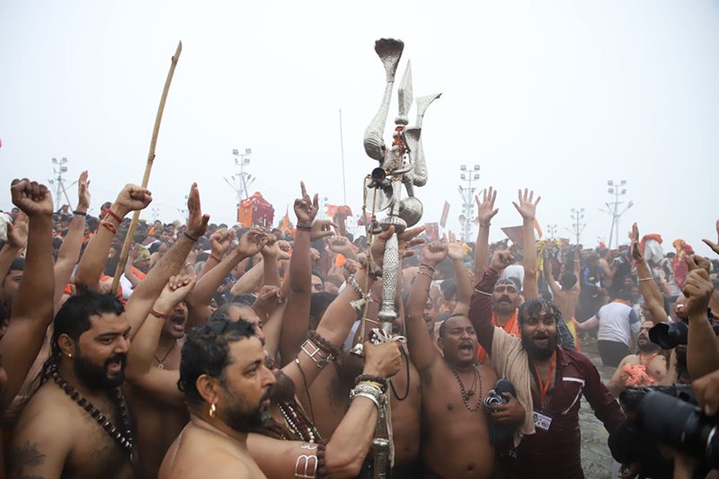 Almost 10 million people took a holy dip in the cold waters at the Triveni Sangam in Uttar Pradesh's Prayagraj in their bid to seek forgiveness for their sins, marking the first 'Amrit Snan' (royal bath) of the ongoing Maha Kumbh, on Jan 14. The Maha Kumbh, the biggest religious congregation in the world, is held after a gap of 12 years in Prayagraj, attracting pilgrims from India and across the globe.