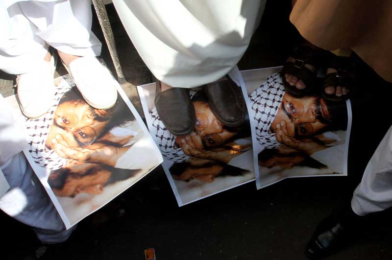 AGARTALA, FEB 15 (UNI):- Akhil Bharatiya Vidyarthi Parishad (ABVP) activists doing condolence and burn Pakistani national flag in front of Rabindra Shatabarshiki Bhavan at Agartala on Friday as a sign of protest against the dastardly terror attack on CRPF jawans at Pulwama sector of Kashmir. UNI PHOTO-149U