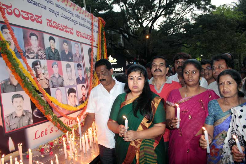 BENGALURU, FEB 15 (UNI) :- Verious organisation holding candal light protest against Pulwama terror attack, in Bengaluru on Friday. UNI PHOTO-139U