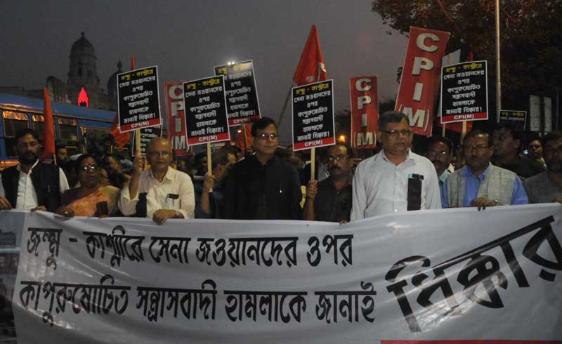 KOLKATA, FEB 15 (UNI) CPI (M) leaders took out silent protest against the killing of jawans in Kashmir in Kolkata on Friday.UNI PHOTO cal7 VKY