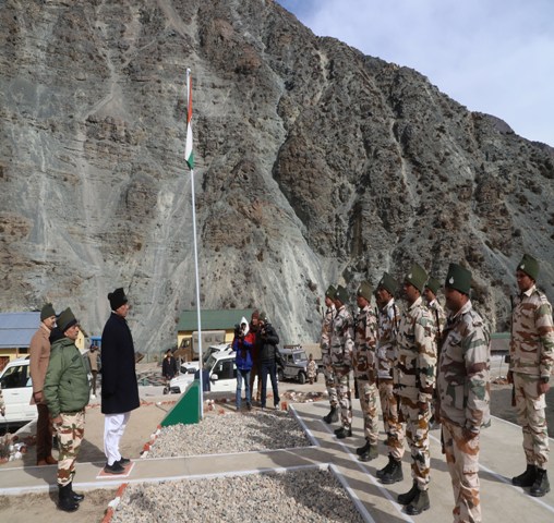 The Union Home Minister, Rajnath Singh addressing the Jawans of Indo-Tibetan Border Police (ITBP), at Nelong Border Out-Post (BOP), in Uttarkashi on January 01, 2018.