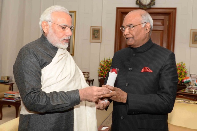 The Prime Minister, Narendra Modi greeting the President, Ram Nath Kovind on the occasion of New Year, at Rashtrapati Bhavan, in New Delhi on January 01, 2018.