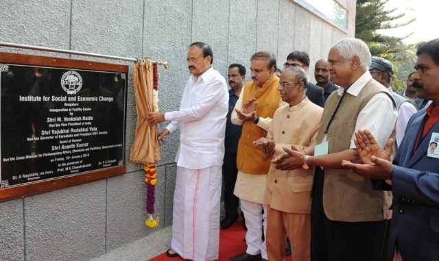 The Vice President, M. Venkaiah Naidu inaugurating the Facility Centre, at the Institute for Social and Economic Change, in Bengaluru on January 19, 2018. The Union Minister for Chemicals & Fertilizers and Parliamentary Affairs, Ananth Kumar and other dignitaries are also seen.