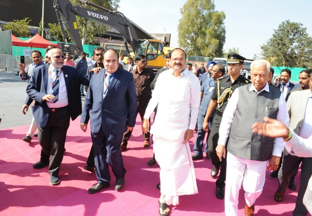 The Vice President, M. Venkaiah Naidu visiting the exhibition on the sidelines of the 28th All India Builders’ Convention, in Bengaluru on January 19, 2018.