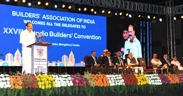 The Vice President, M. Venkaiah Naidu delivering the inaugural address, at the 28th All India Builders’ Convention, in Bengaluru on January 19, 2018.