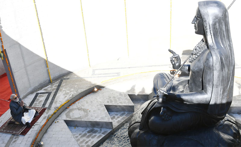The Prime Minister, Shri Narendra Modi inaugurates Shri Adi Shankaracharya Samadhi and unveils the statue of Shri Adi Shankaracharya, at Kedarnath Temple, in Uttarakhand on November 05, 2021.