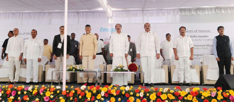 The Vice President, M. Venkaiah Naidu at an event to inaugurate the Omega Hospitals, in Guntur, Andhra Pradesh on February 03, 2018. The Chief Minister of Andhra Pradesh, N. Chandrababu Naidu and the Minister for Health and Medical Education, Andhra Pradesh, Dr. Kamineni Sreenivas are also seen.