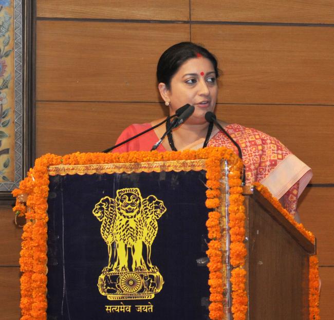The Union Minister for Textiles and Information & Broadcasting,Smriti Irani delivering the “Sardar Patel Memorial Lecture 2017†on ‘Model of Broadcast Landscape for Democracies’, at a function, in New Delhi on October 26, 2017.