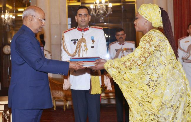 The Ambassador-Designate of Gambia, Ms. Jainaba Jagne presenting her credentials to the President, Ram Nath Kovind, at Rashtrapati Bhavan, in New Delhi on October 26, 2017.