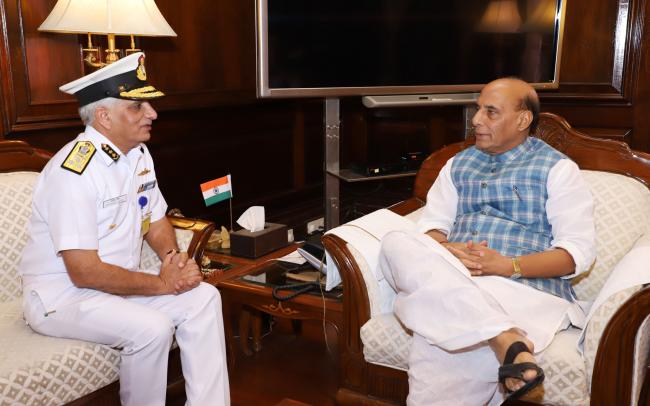 The Director General, Indian Coast Guard, Rajendra Singh calling on the Union Home Minister, Rajnath Singh, in New Delhi on October 26, 2017.