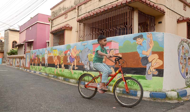 Indian cities are not known for the walls of buildings transformed into art galleries as in the West. There is no Bansky yet in India where city walls are mostly usurped by politicians for flaunting their election posters. But one Kolkata neighbourhood recently showed the way, turning it into a graffiti hotspot. Photo journalist Avishek Mitra captures the change