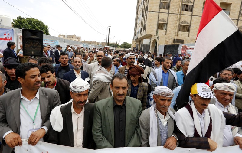 SANAA, June 20 (Xinhua) -- Yemeni protesters take part in a rally outside the UN Office in Sanaa, Yemen, on June 19, 2019. The head of the World Food Programme (WFP) David Beasley on Monday lashed out at Houthi rebels in Yemen for misappropriating aid supplies. David Beasley warned that the WFP will have to begin a phased suspension of food assistance, most likely toward the end of the week unless it receives the necessary assurances from the Houthis.