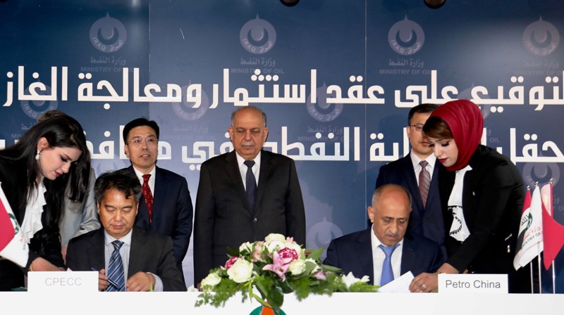 BAGHDAD, May 9, 2019 (Xinhua) -- Guests attend a signing ceremony at the Iraqi Oil Ministry in Baghdad, Iraq on May 8, 2019. Iraq and a Chinese company signed on Wednesday a 1.07-billion-U.S. dollar agreement to process associated gas extracted from Iraqs southern giant Halfaya oilfield.
