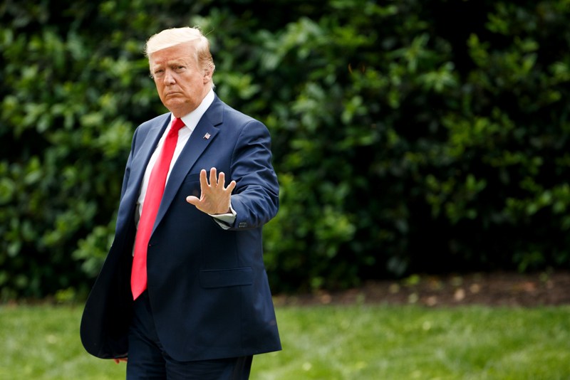 WASHINGTON, MAY 9 (Xinhua)- U.S. President Donald Trump leaves the White House in Washington D.C., the United States, on May 8, 2019. U.S. President Donald Trump on Wednesday asserted executive privilege on the Mueller report, protecting the Department of Justice from Congressional subpoenas.