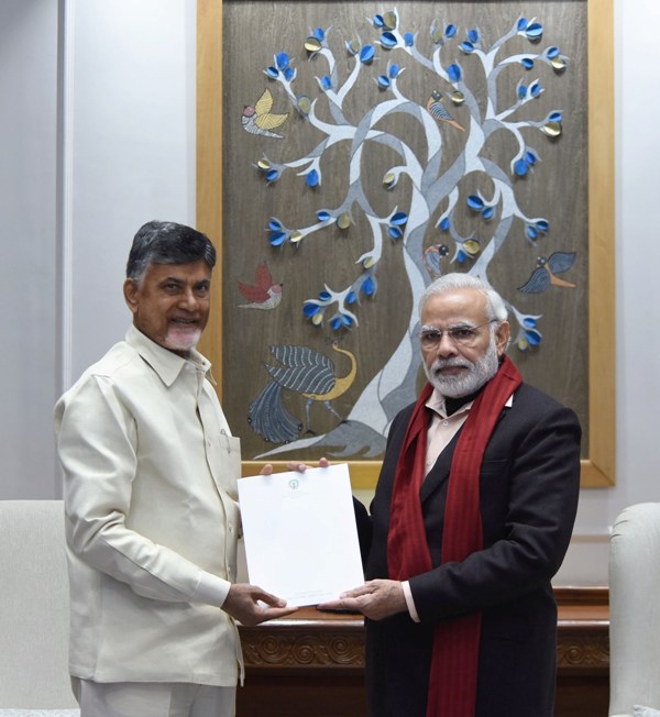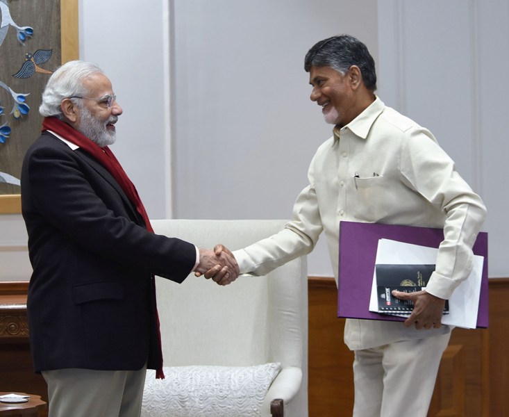 The Chief Minister of Andhra Pradesh, N. Chandrababu Naidu calling on the Prime Minister, Narendra Modi, in New Delhi on January 12, 2018.