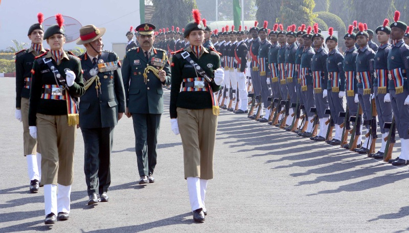 The Chief of Army Staff, General Bipin Rawat inspecting the Parade, during his visit to the NCC Republic Day Parade Camp 2018, in New Delhi on January 16, 2018. The DG, NCC, Lt. Gen. B.S. Sahrawat is also seen.