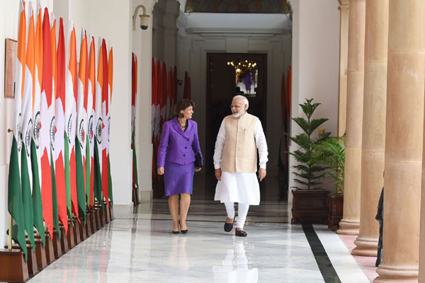 The Prime Minister,Narendra Modi with the President of Switzerland, DorisLeuthard, at Hyderabad House, in New Delhi on August 31, 2017.