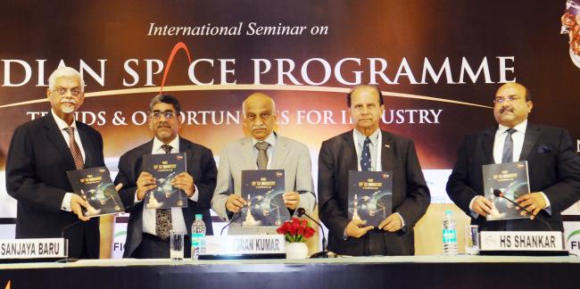 The Secretary, Department of Space, Chairman, Space Commission and Chairman, Indian Space Research Organisation (ISRO), Kiran Kumar releasing the Compendium on Indian Space Industry, at the inauguration of the International Seminar on Indian Space Programme : ‘Trends and Opportunities for Industry’, in New Delhi on November 20, 2017.