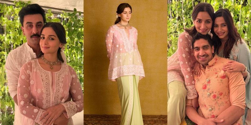 The 32-year-old donned a soft pastel (light pink) chikankari (traditional embroidery) kurta, sheer in places, with a relaxed silhouette.