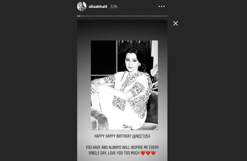 In an Instagram story, Alia, who is now a leading contemporary Bollywood actor, wrote, "..You have and always will inspire me every single day. Love you too much.."