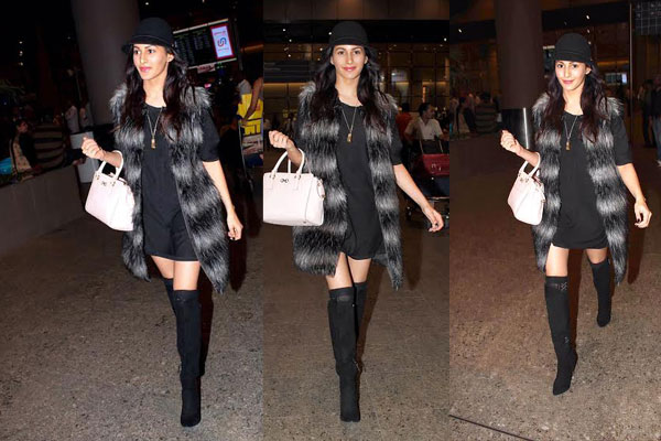 Amyra looked uber chic in a Mitali Wadhva Faux Fur Vest which she accessorized with a Salvatore FerragamoBag and an H&M Hat.