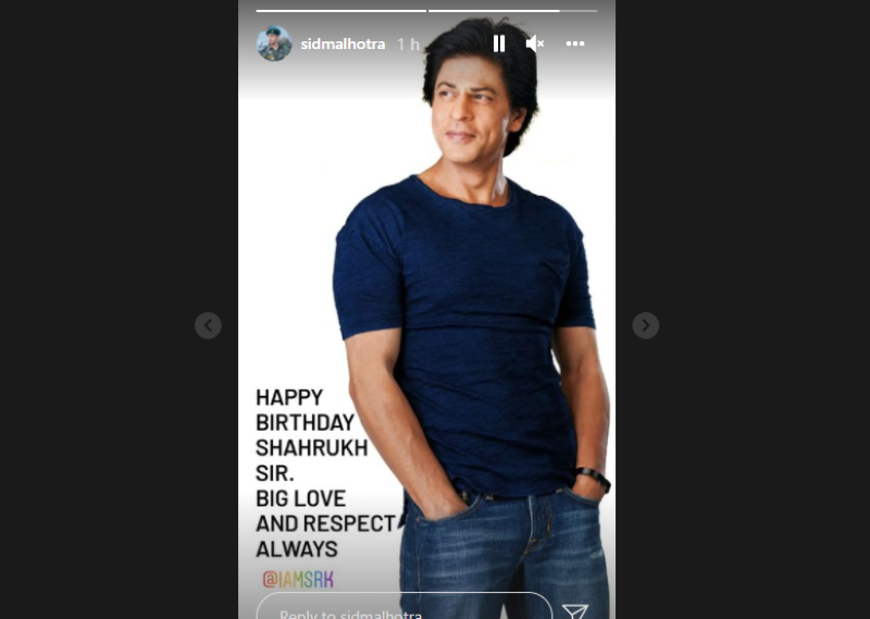 "Happy Birthday Shah Rukh sir. Big love and respect always," actor Sidharth Malhotra says.