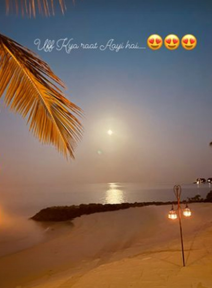 She captioned the view as: "Uff kya raat aayi hai."
