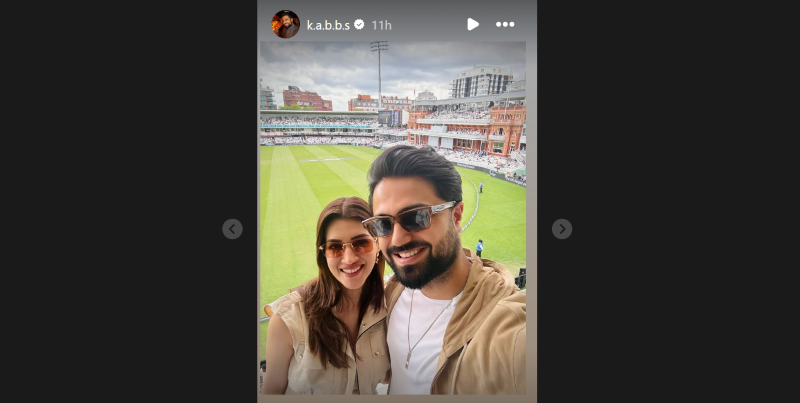 In an Instagram story shared by Kabir, Kriti is seen twinning with her rumoured beau in beige and white coloured attires at the Lord's with all smiles.