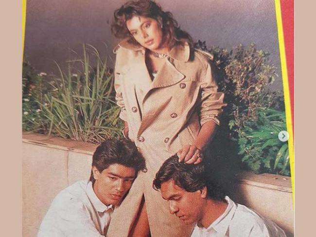 In the image, a teen Manish could be seen posing with actress Pooja Bedi and a male model.