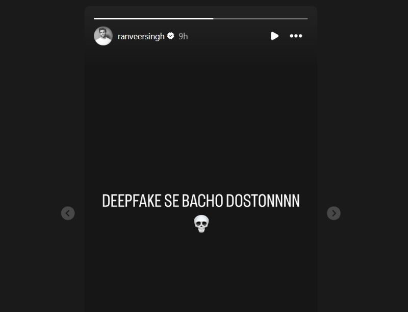 The Padmavaat actor has now taken to Instagram story to flag a deep fake alert and wrote: "Deepfake se bacho doston" (Beware of deepfakes, friends).