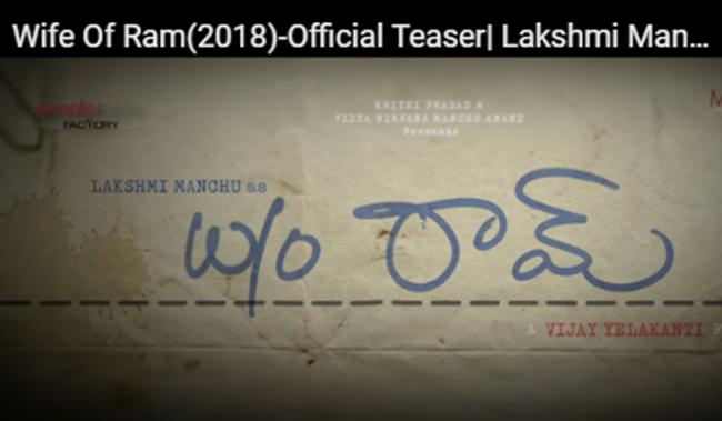 Mumbai, Apr 27 (IBNS): Lakshmi Manchu starer 'Wife Of Ram' official teaser has been released by makers.