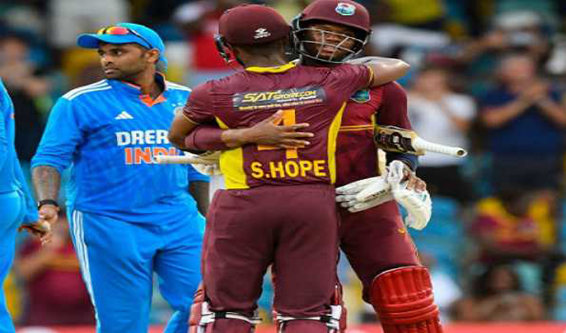 Barbados: West Indies drew level in the three-match ODI series with a facile six-wicket win in rain-hit second ODI against India by riding high on Shai Hope's fifty and three-fers from Romario Shepherd and Gudkesh Motie at Bridgetown's Kensington Oval here on Saturday.