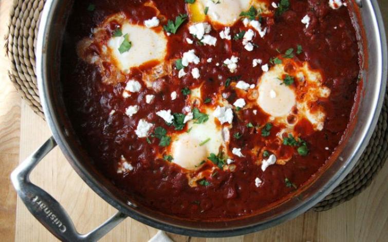 Shakshuka: Shakshuka is a dish of eggs poached in a sauce of tomatoes, sweet and spicy peppers and is often spiced with cumin and topped off with freshly cut herbs. Head to Dr. Shakshuka and swipe your bread across the pan to pick up the runny egg drenched sauce