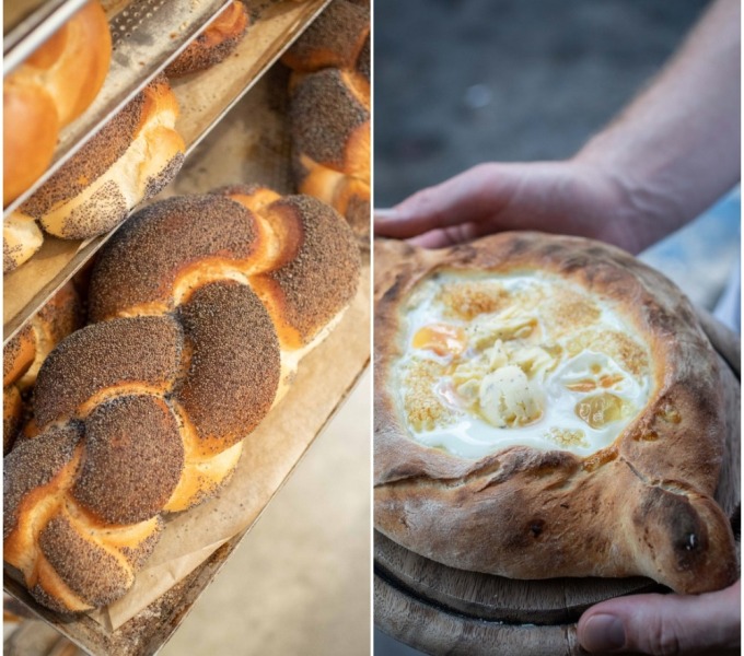 Khachapuri: Try this traditional Georgian dish in Mahane Yehuda Market made with eggs and cheese combined in an eye shaped dough. Once baked, dip the outer crust in the rich and oozing centre of egg and cheese