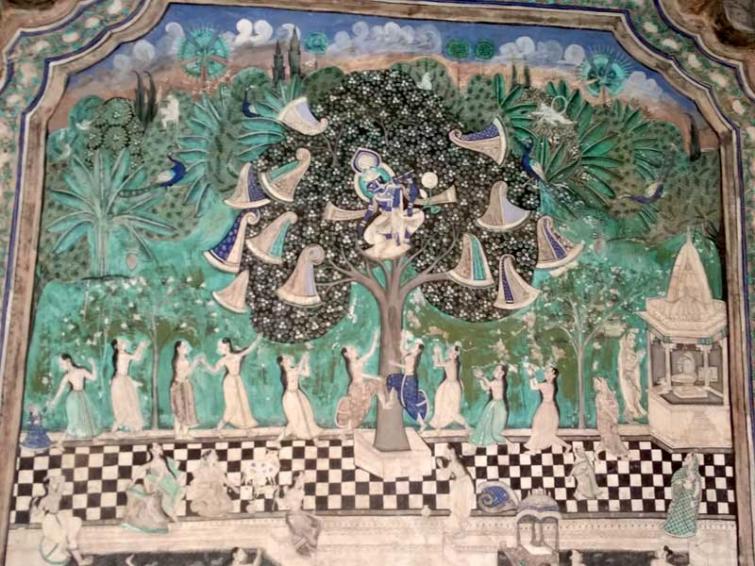 The Chitrashala within the Garh Palace has mind-blowing frescoes in the miniature style depicting 'Ragmala' and 'Raslila' of Radha and Krishna apart from scenes of battles and courts, flowers and plants of every conceivable shape. Turquoise, blue, green, red and yellow have been used against a white background, lending an ethereal feel. At stretches the walls look bejeweled. You would almost want to touch it. And there are people who throw caution to the wind. But a guard is always around to dissuade those bunch of rule-breakers.