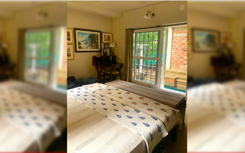 A sixth room, Aananda, located on the ground floor, is reserved for the host family but can be made available for elderly guests or those with mobility issues.