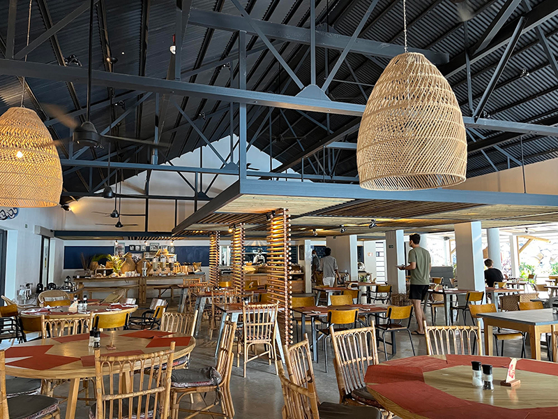 Ye!Man is the hotel's main restaurant where both local and international dishes together give you a fairly wide choice. They rightly claim that you can sit down at one of the sharing tables, amidst surfboards and vintage photos of Tamarin, and watch the Chefs at work in the open kitchen. I loved their  international breakfasts. You can also enjoy a Mauritian snack at their pool bar and restaurant Tribu.
