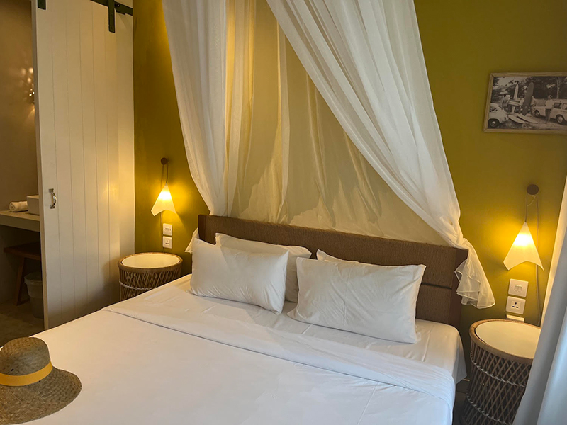 The hotel has 116 rooms including two rooms for disabled guests. Among the rooms categories are- Comfort Room, Family Unit, Superior Room and Privilege Room. The rooms are painted in yellow and white with polished concrete floors. The cozy beds are highlighted by  muslin drapes hanging from the ceiling.