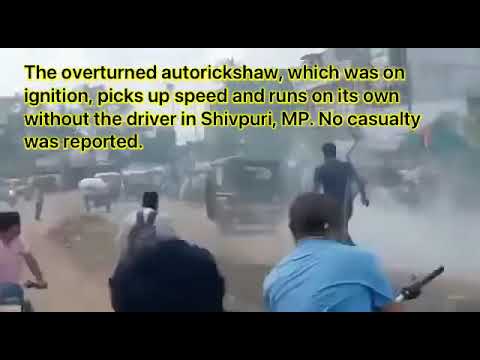 The overturned autorickshaw, which was on ignition, picks up speed and runs on its own without the driver in Shivpuri, MP. No casualty was reported.