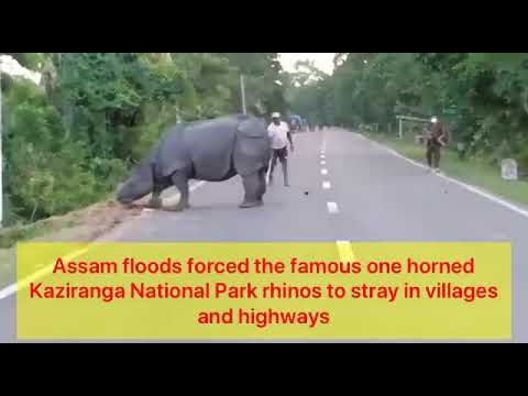 Assam floods force Kaziranga rhinos to stray into highways and villages