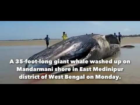 A 35-foot-long giant whale washed up on Mandarmani shore in East Medinipur district of West Bengal on Monday. It was dead and its head was in a pool of blood. Locals first noticed the never-before-seen sight in early morning and informed the police. Officials of forest & wildlife & fisheries departments yet to confirm the reason behind its death.