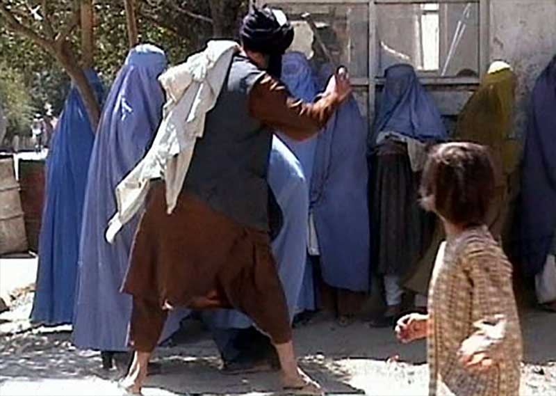 Image: Taliban religious police beating a woman in Kabul on 26 August 2001/ A file photo from Wikimedia Commons