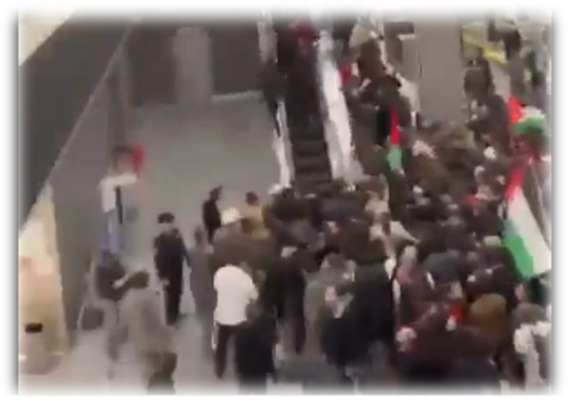 The protesters were seen shouting antisemitic slogans inside the airport.