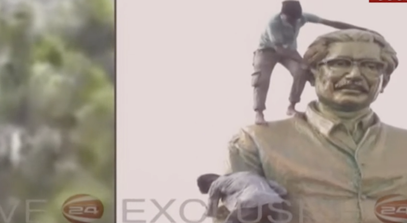Anti-Hasina protesters vandalized statues of the nation's founding father, Sheikh Mujibur Rahman.