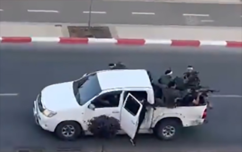 One such video, captured by a resident in Sderot, shows Hamas militants firing at civilian vehicles passing along the street. The resident filmed the incident from his balcony and can be seen quickly seeking cover as a gunman glances in his direction.