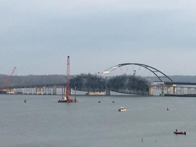 "River and road traffic were halted while the 86-year-old bridge was demolished in western Kentucky," reported BBC.