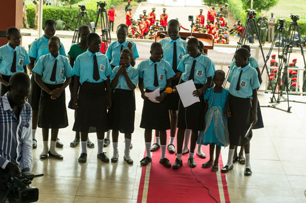 Schoolchildren in South Sudan singing during the national launch of the campaign “Children, Not Soldiers.” Photo: UNMISS